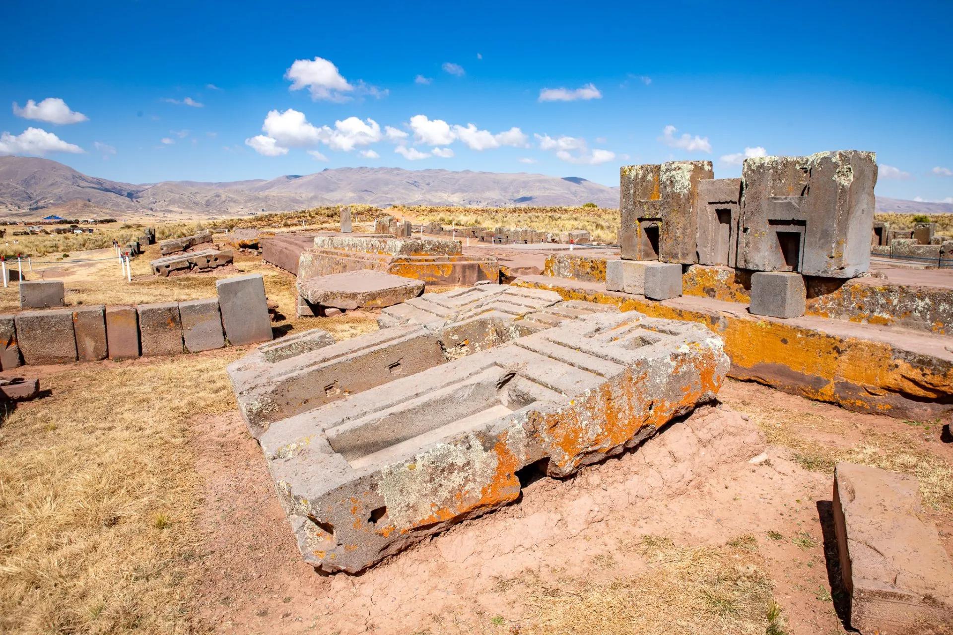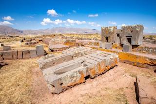 Partendo da La Paz si guida per 72 km verso ovest fino a Tiwanacu. Un viaggio nel passato mentre si visitano le rovine che un tempo erano il centro cerimoniale e politico della cultura Tiwanaku. Il sito patrimonio mondiale dell'UNESCO si trova ad un'altitudine di 3.850 m e risale a migliaia di anni fa. Una passeggiata nel complesso archeologico per ammirare la piramide di Akapana, il tempio semi-sotterraneo, il Palazzo Kalasasaya, la porta del sole e i monoliti Ponce e Fraile. Si visita il museo locale prima di proseguire per Copacabana. Pranzo in un ristorante locale.